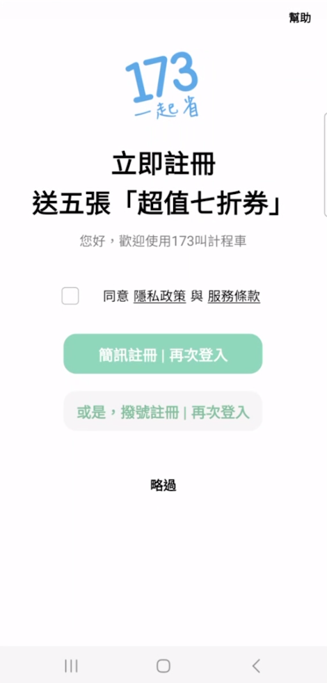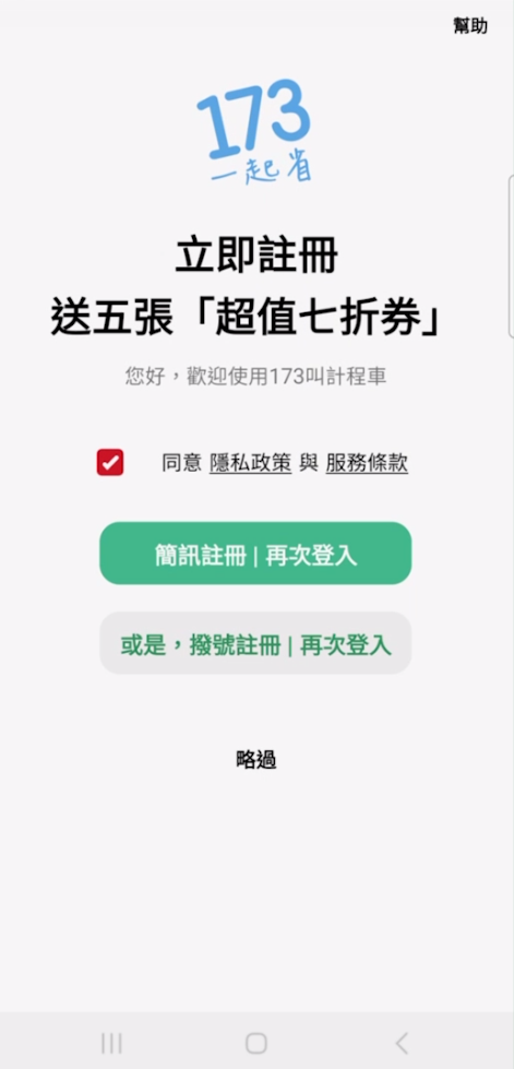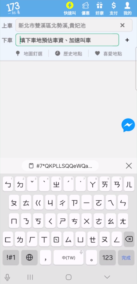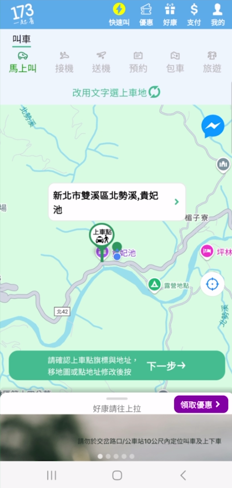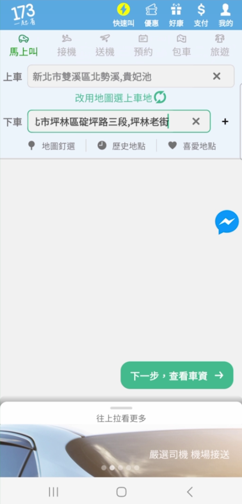 1. 打開173叫車APP後,確認上車地址按『下一步』