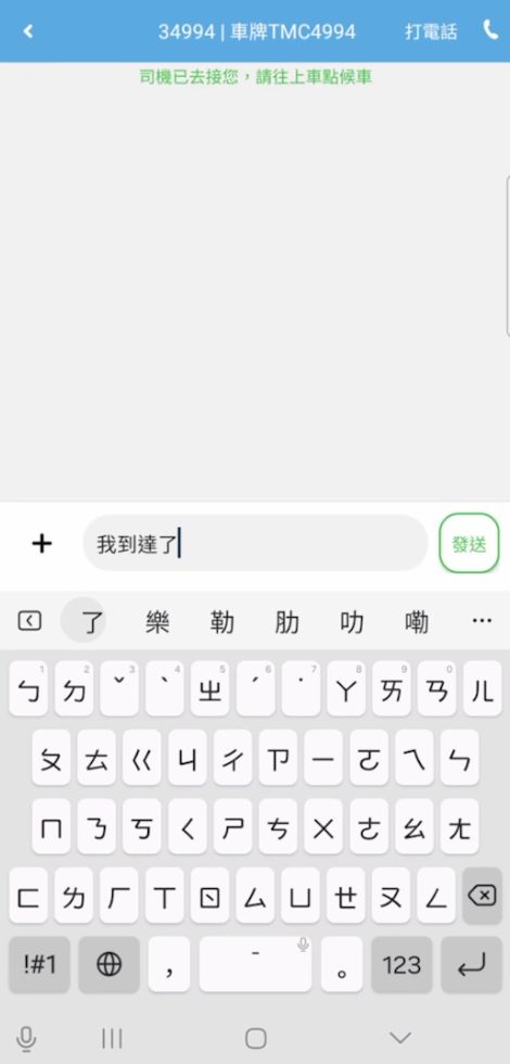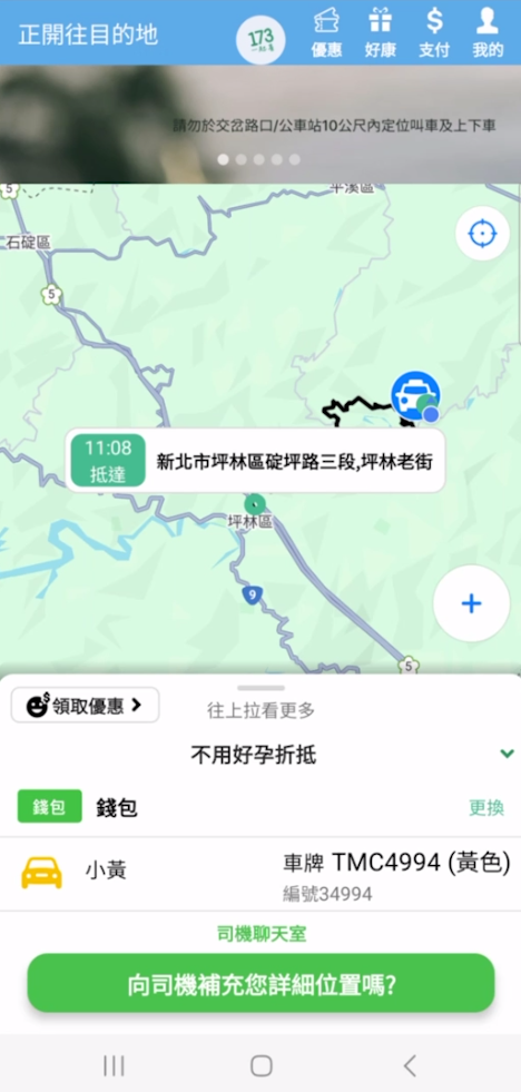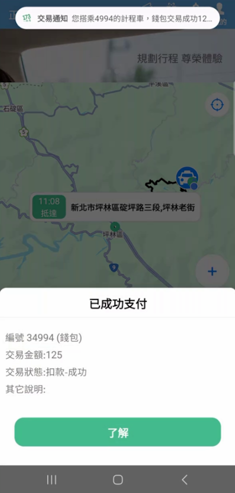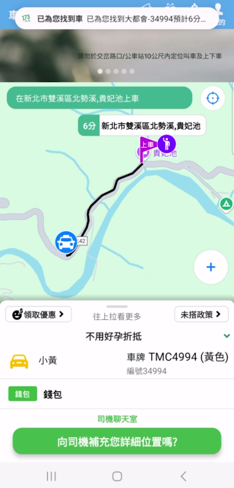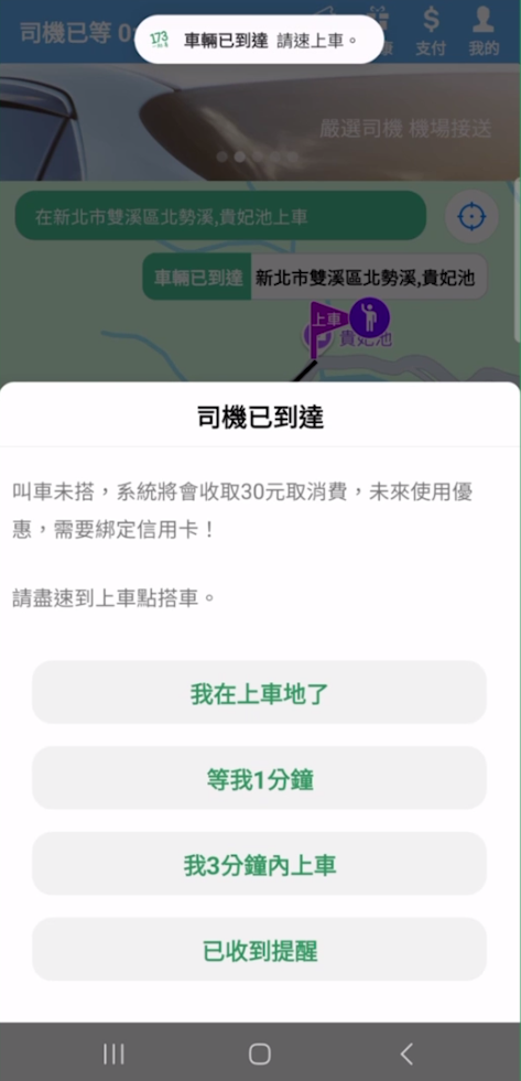 3. 叫車到車,APP即時顯示計程車編號與位置